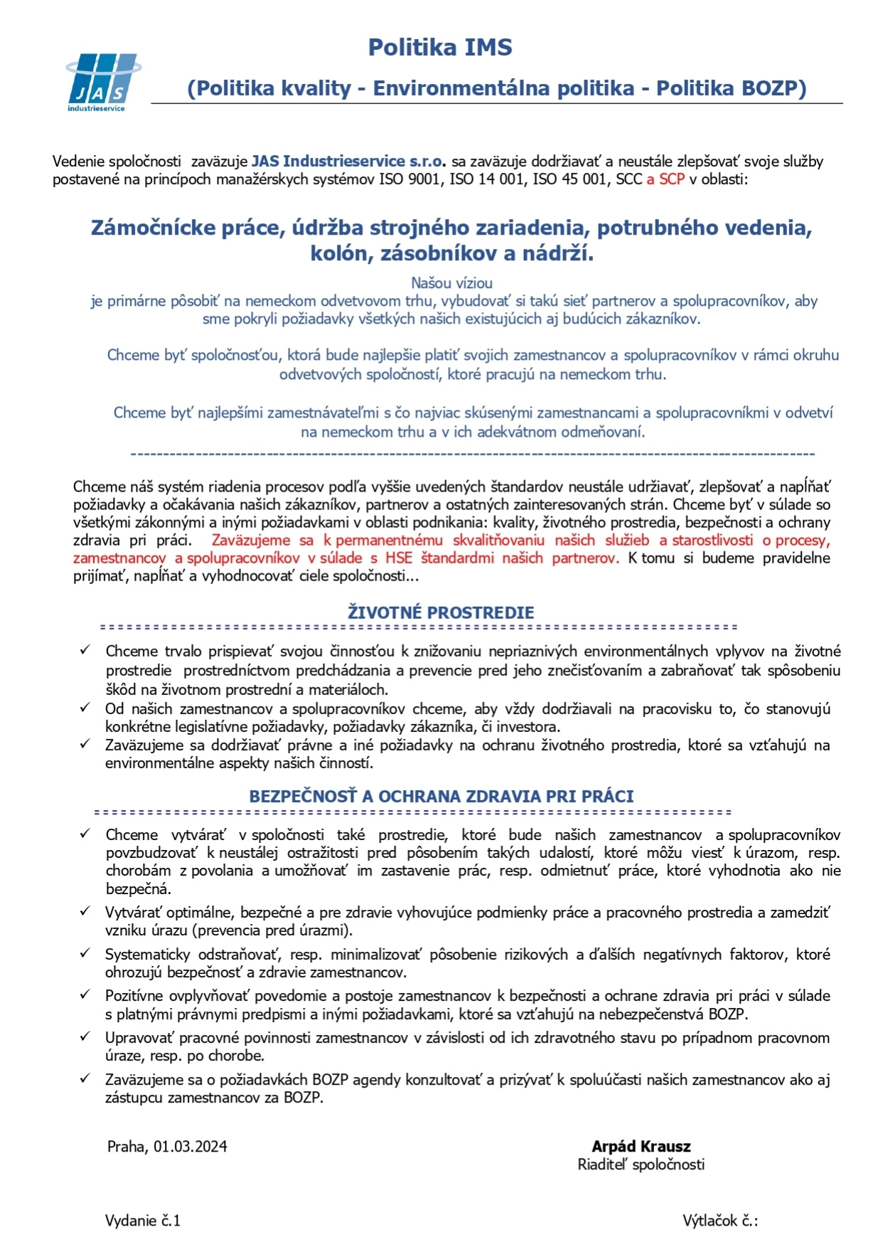 Copyright © JAS industrieservice s. r. o. | Vytvořil Web z Moravy